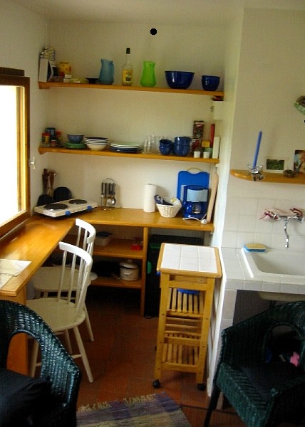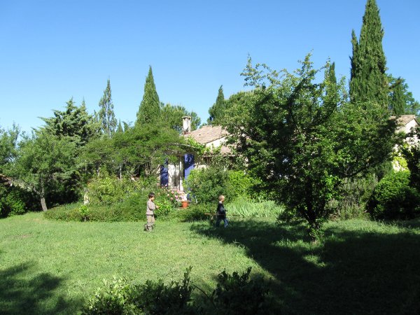| Ferienhaus (90 m2) "Zypresse" 3 Schlafzimmer (mit zusammengestellten bzw. zusammenstellbaren Einzelbetten zu 90 cm x 200 cm), Bad (Badewanne mit Dusche), separate Toilette, gut ausgestattete Küche (Doppelspüle, Herd mit Backofen und Kühlschrank), großes, schönes Wohn- und Esszimmer, Satelliten-Fernseher, Stereoanlage mit Radio, CD- und Kassettenspieler, elektrische Heizung in jedem Raum, große Terrasse mit Pergola; großer, ruhiger Garten (2000 m2) mitSandkasten-Ecke (150 cm x 150 cm). Neu lädt für das Ferienhaus "Zypresse" ein achteckiger Pool (ca. 4 m Durchmesser; 1,2 m Wassertiefe) mit hübscher Holzummantelung zum Baden ein. Der Pool ist durch die abnehmbare Leiter kindersicher. Ferienhäuschen (15 m2) "Feigenbaum" 1 Wohn-und Schlafraum mit ausklappbarer Couch (1,40 m x 2 m Liegefläche) und Kochnische (2 Heizplatten, kleiner elektrischer Backofen, kleiner geräuschloser Kühlschrank, Spüle), elektrische Heizung, separates Minibad mit Dusche und WC, eigene Terrasse vor und beschattete, nicht einsehbare Sitzecke hinter dem Haus, mit Blick aufs Dorf. Ideal für Einzelmieter oder Paare, die es gerne gemütlich haben. Es eignet sich auch in Kombination mit dem großen Haus für Gruppen bzw. 2 Familien mit 4-7 Personen. Das Häuschen ist klein, gemütlich eingerichtet und recht einfach gebaut: von südfranzösischen Handwerkern und mit französischem Charme. Die Ländliche Umgebung der Häuser und die Nachbarschaft zu einem kleinen Wald bringt von vielen Gästen geschätzte Naturnähe mit sich; Die Vielfalt an Hecken, Büschen und Bäumen zieht verschiedenste Vögel an: Im Juni 2007 beobachtete bzw. erlauschte ein kundiger Gast: Nachtigall, Amsel, Heidelerche, Schwarzkopf-Grasmücke, Pirol, Eichelhäher, Rabenkrähe, Elster, Turteltaube, Türkentaube, Ringeltaube, Wiedehopf, Mauersegler, Sperber, Buchfink und Zwergohreule. In manchen Teilen des Grundstücks, z.B. an der Schmalseite hinter dem Ferienhaus, haben sich Orchideenarten angesiedelt, die auch im anliegenden Wald zu finden sind. Das Anwesen liegt im Departement Vaucluse in der Region Luberon, zugleich im Biosphärenreservat und Landschaftspark Luberon,60 km östlich der Großstadt Avignon und 7 km nördlich der Kleinstadt Apt am Rande des Dorfes in St. Saturnin lès Apt , 700 m vom Dorfzentrum entfernt, ca 360 m über Meereshöhe. Oberhalb des Dorfes beginnt das von schattigen, meist gut erwanderbaren Schluchten gekerbte Vaucluse-Massif auf über 1000 m Höhe anzusteigen und bietet viele herrliche Wandertouren. Die Landnutzung rund ums Haus ist eine Mischform aus Landwirtschaft (Grundstücke zu einigen Hektaren, v.a. mit Kirschen und Wein) und Einzelhäusern mit Gartengrundstücken zu mindestens 2000 m2. Unser Grundstück (Park-Garten) liegt an einem schmalen Sträßchen, das nur die Streusiedlung erschließt, durch die es führt. St. Saturnin ist ein schönes und lebendiges Dorf mit Lebensmittelläden, Bäckern, Post, Apotheke, Restaurants und Bistros. Einen Biosupermarkt gibt es in 7 km Entfernung auf dem Weg nach Apt. Das Schwimmbad von St. Saturnin ist im Juli und August geöffnet. Die nächsten Bademöglichkeiten finden sich in Apt (Schwimmbad, Erlebnisbad). Bis zum Meer fährt man mit dem Auto 1,5-2h. Informationsmaterial zur Umgebung erhalten Sie unter der Homepage von St. Saturnin, im Rathaus von St. Saturnin, sowie im Office de Tourisme des Nachbarortes Roussillon (ot-roussillon@axit.fr). Eine Landkarte zur Lage der Ferienhäuser finden Sie auf unserer Internetseite bei Fewo-direkt.de, einem Ferienhausportal privater Anbieter. |
