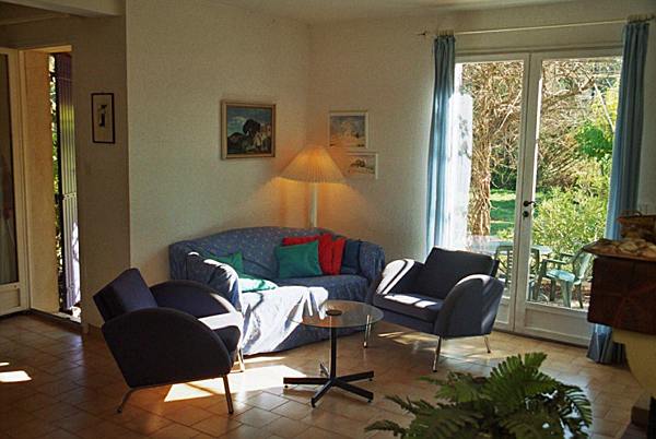 | Maison principale 3 chambres, salle de bain (baignoire avec douche), toilette separée, cuisine bien equipée, grand séjour très agréable, TV, radio, cheminée, chauffage éléctrique, grande terrasse sous treille, avec petite piscine octogonale en bois, jardin clos 2000m2, bien arboré et calme, 700 m du centre du village. St. Saturnin lès Apt. Studio indépendant (15 m2) dans le jardin, séjour avec canapé-lit et coin cuisine, petite salle de bain avec toilette et douche, terrasse. Chauffage éléctrique. St. Saturnin lès Apt se trouve 7 km au nord d' Apt (département du Luberon) et 50 km à l' ouest d'Avignon. |
